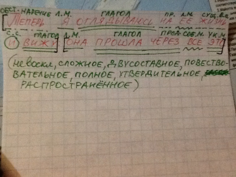 Теперь я оглядываюсь на ее жизнь и вижу: она прошла через все это. Нужен синтаксический разбор предложения