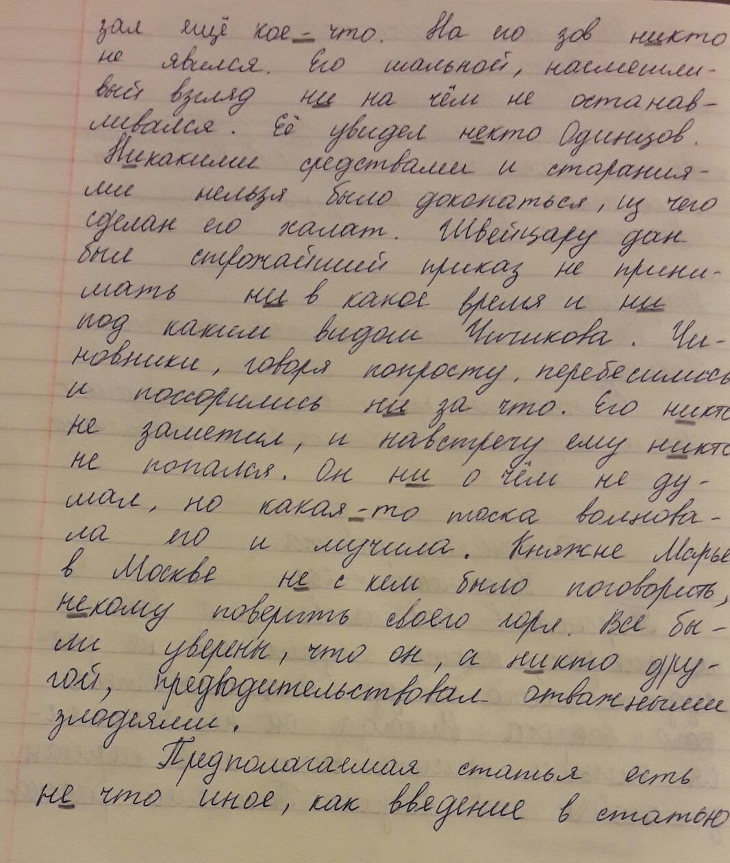 Предполагаемая статья есть не что иное, как введение в статью собственно о Пушкине. Что-то случилось. Кое-кто из дачников вышел за калитку. Никто в классе не знает пока, ни кто это сделал, ни что рукаводило этим учеником. Соседняя дача пока никем не занята. Я не знаю, ни кем это помещение снято, ни чем занимаются занявшие его люди. Этот провал есть не что иное, как угасший кратер. Старцев бывал в разных домах и встречал много людей, но ни с кем не сходился близко. Кругом не было никого.