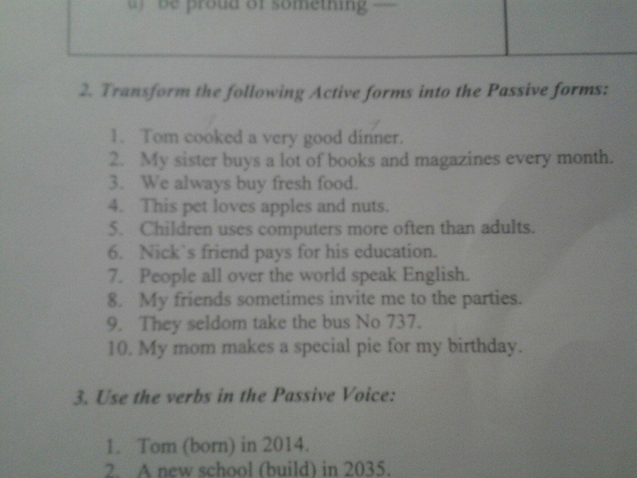 1. A very good dinner was cooked by Tom.