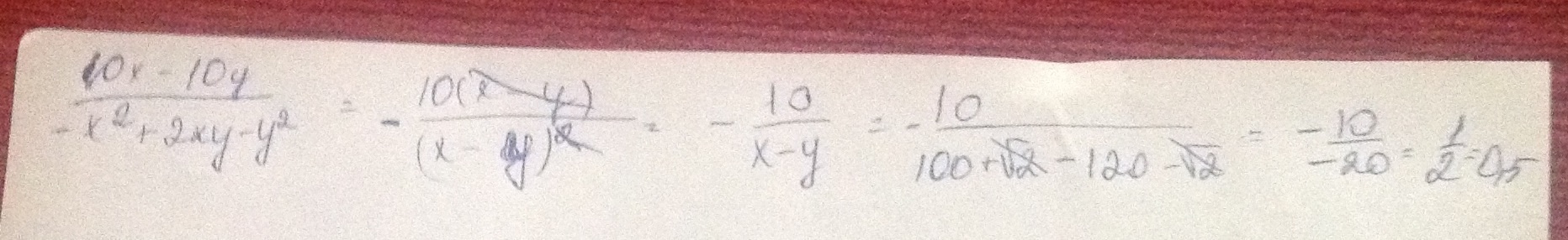 из числителя дроби выносим 10 за скобку получаем 10*(х-у)