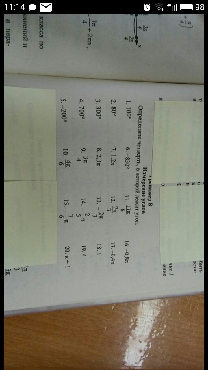 б)-1290+(да-да складывание,т.к. угол отрицательный)360*3=-210(вторая четверть,т.к.-270<-210<-180,не забываем про отстчет против часовой стрелки)