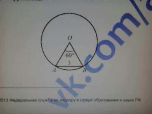 Центральный угол АОВ, равный 60, опирается на хорду АВ длиной 3. Найдите радиус окружности