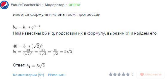Нам известны b6 и q, подставим их в формулу, выразим b1 и найдем его