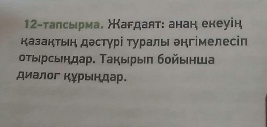помогите пожалуста 12-тапсырма зарание спс там надо составить 5 вопросов и 5 ответов