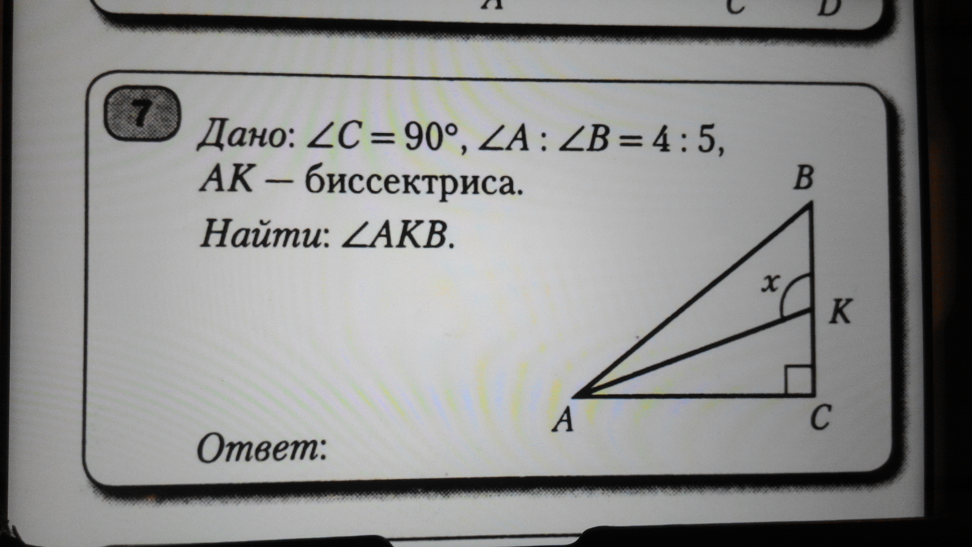 Тогда угол АКВ = 180°-(90°+20°)=180°-110°=70°.