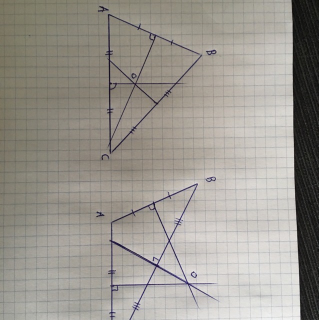 Серединные перпендикуляры треугольников пересекаются в одной точке О.