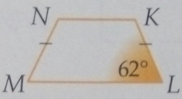 MNLK - равнобедренная трапеция, ∠L = 62°