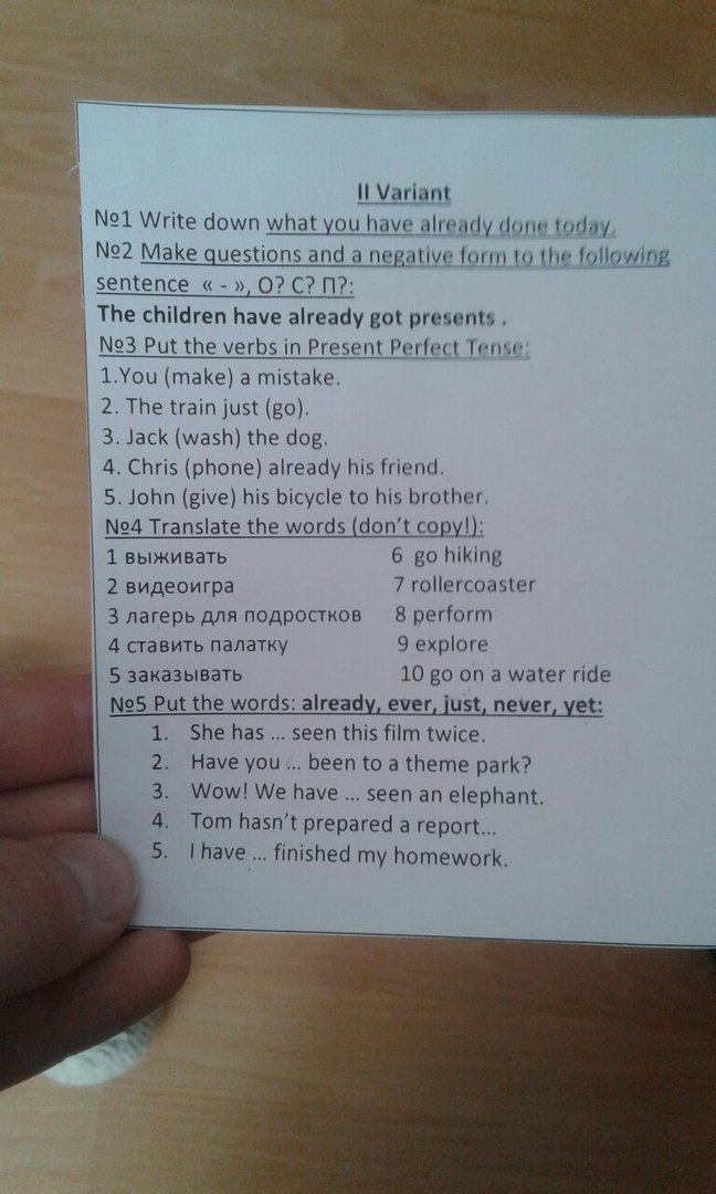 5) 1 already 2 ever 3 never 4 yet 5 just