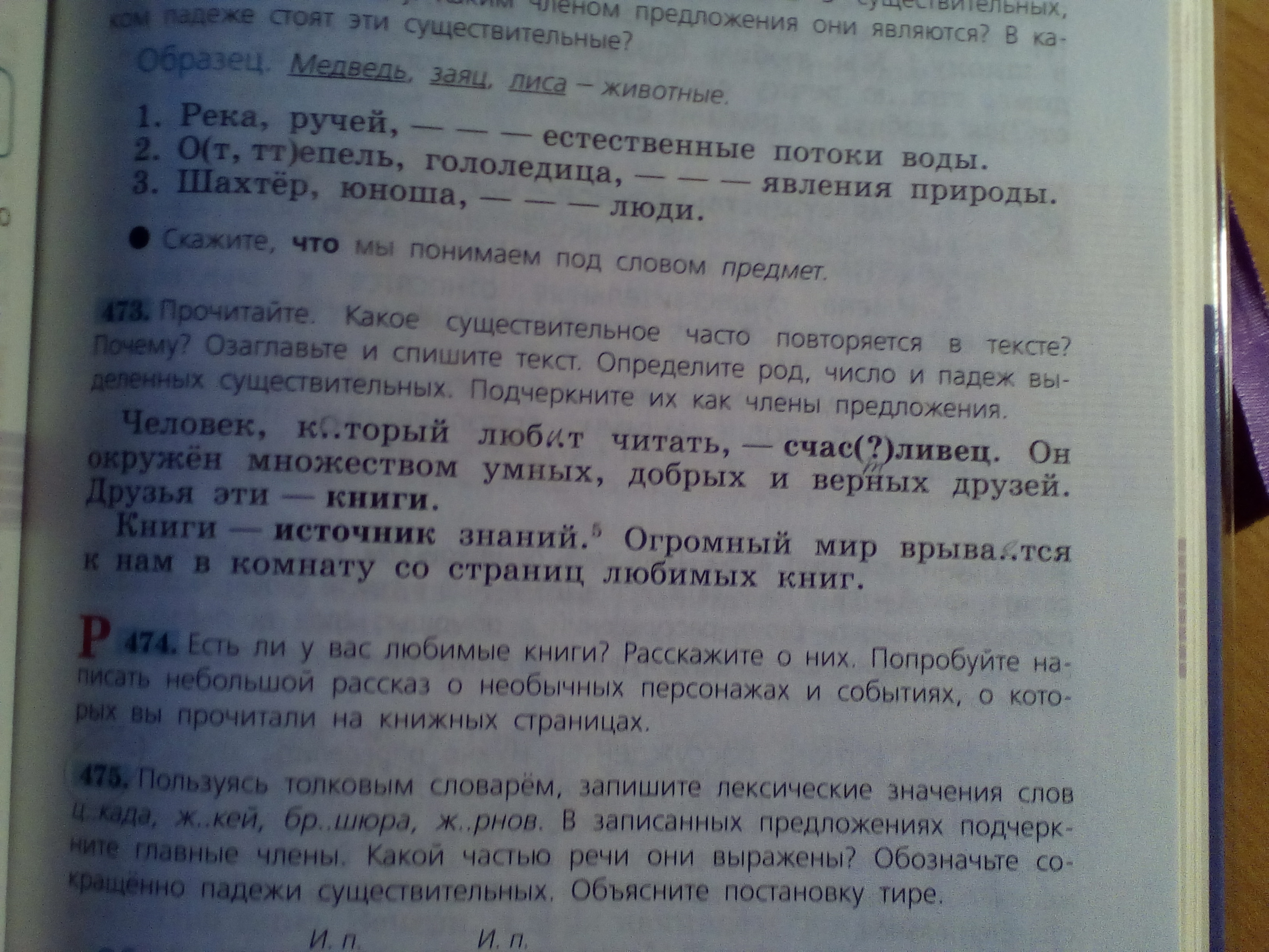 Счастливец (в предложении подлежащие)-м.р., ед.ч., И.п. ; книги (в предложении подлежащие)-мн., И.п., рода нет, так как мн.ч., а в ед.ч ж.р. ; источник (в предложении дополнение)-м.р., ед.ч., В.п.
