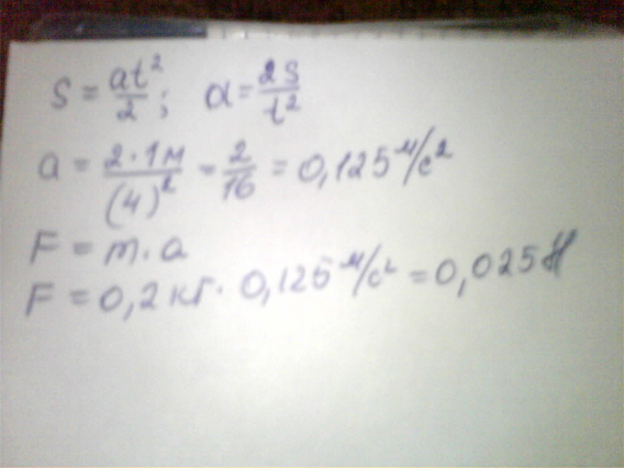 определить равнодействующую сил, под действием которых, тело массой 200 г из состояния покоя проходит путь 1м за 4с