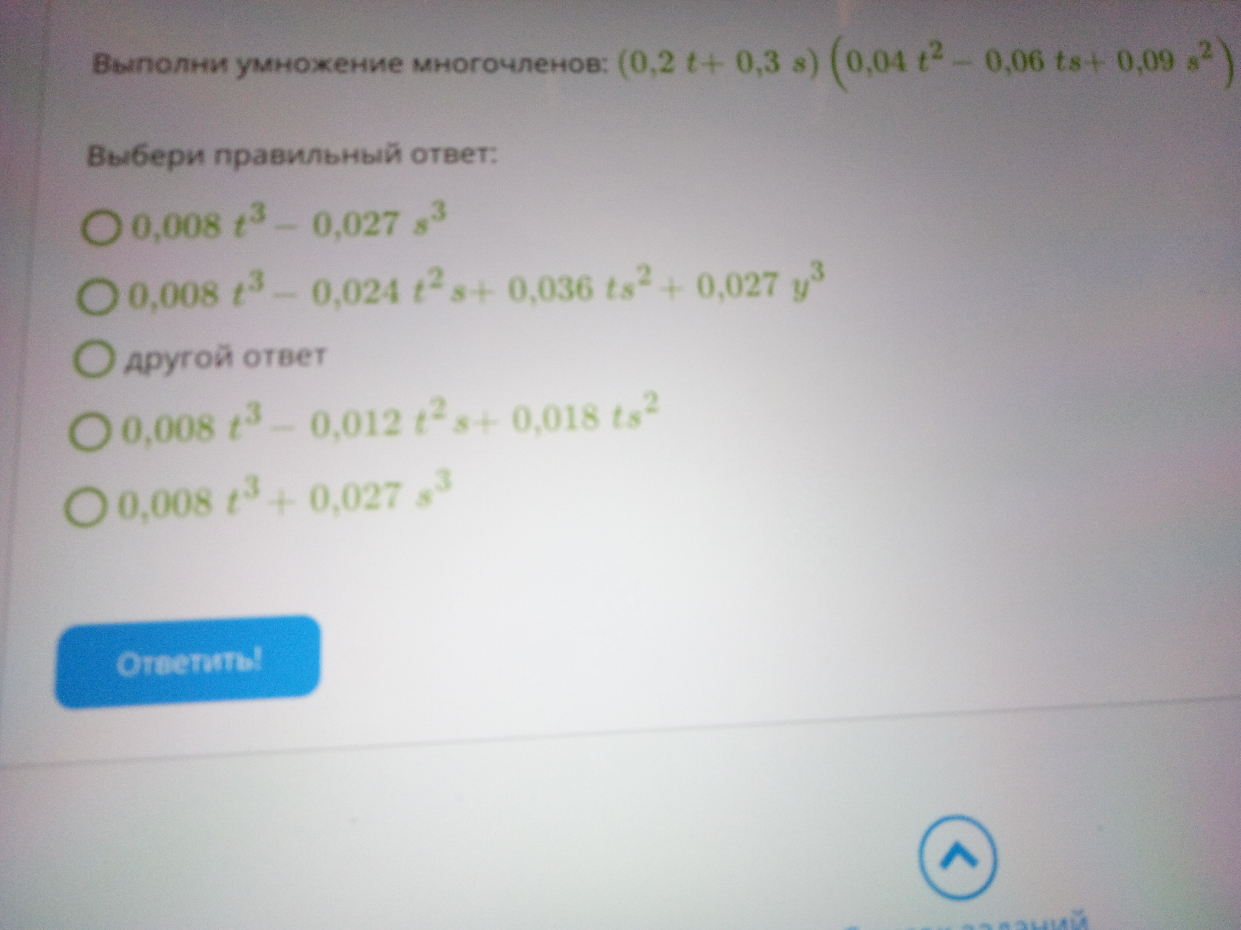 ответ : 0,008t3 - o,012t2s + 0,018ts2