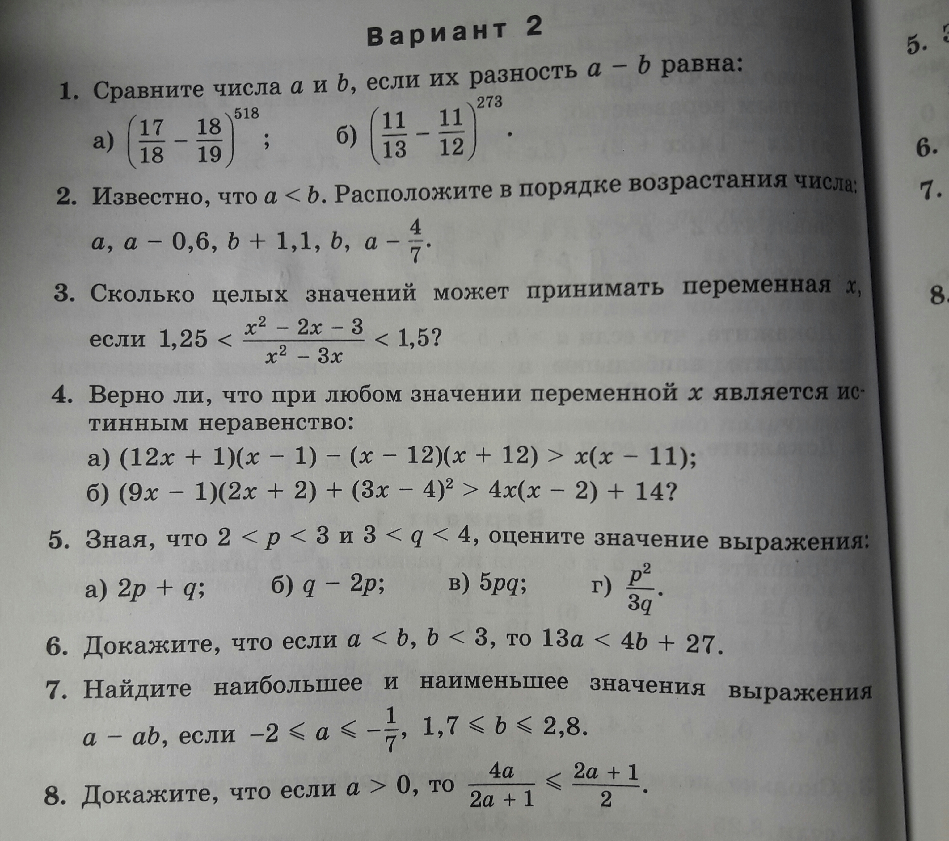 7) -2 <= a <= -1/7; 1,7 <= b <= 2,8.