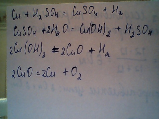 Осуществите практически следующие превращения: Сu --> CuSO4 --> Cu(OH)2 --> CuO - Cu