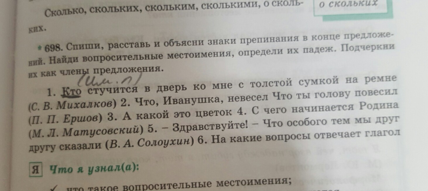 Кто(вопр.мест) стучится в дверь ко мне с толстой сумкой на ремне?