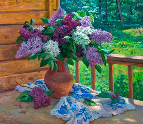 В вазе стояла сирень белого и фиолетого цвета.