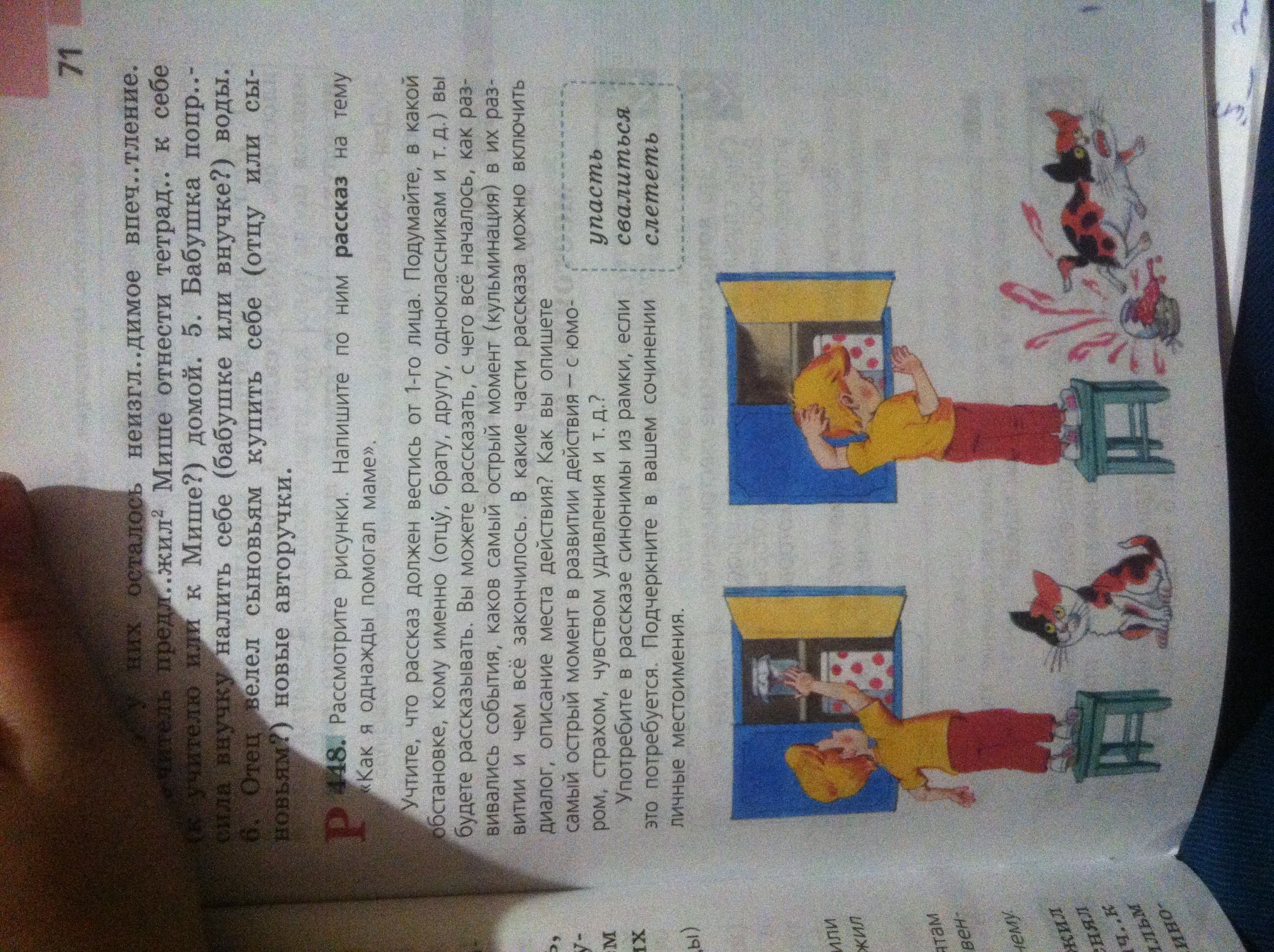В этом году было много ягод и различных фруктов. Мама варила варенье почти каждый день. Я помогала перебирать ягоды, мыть баллоны, вообще делала все, что просила мама, старалась во всем помочь, облегчить мамин труд. Утром я вошла на кухню. На столе стоял баллон с вареньем, которое мама вчера сварила и приготовила, чтобы убрать в шкафчик. я решила помочь маме. Она придет сейчас сюда и очень удивится, что варенье само встало на место. Я пододвинула табурет к шкафчику, приоткрыла дверцы и взяла банку с вареньем, но она оказалась тяжелее, чем я ожидала. Я покачнулась, банка с треском грохнулась об пол. Кот, сидящий рядом, скакнул из кухни подобно молнии. Я в ужасе замерла на месте. Прибежала из комнаты мама, она мгновенно все поняла, но не стала меня ругать.