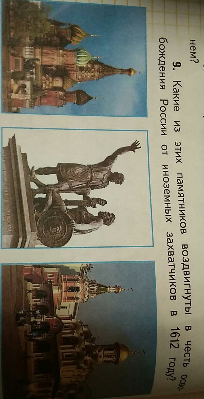 Какие из этих памятников воздвигнуты в честь освобождения России от иноземных захватчиков в 1612 году?