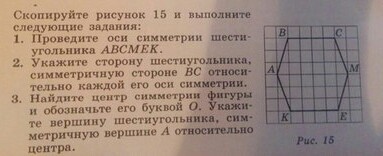 Вершине А симметрична вершина М, относительно центра симметрии.