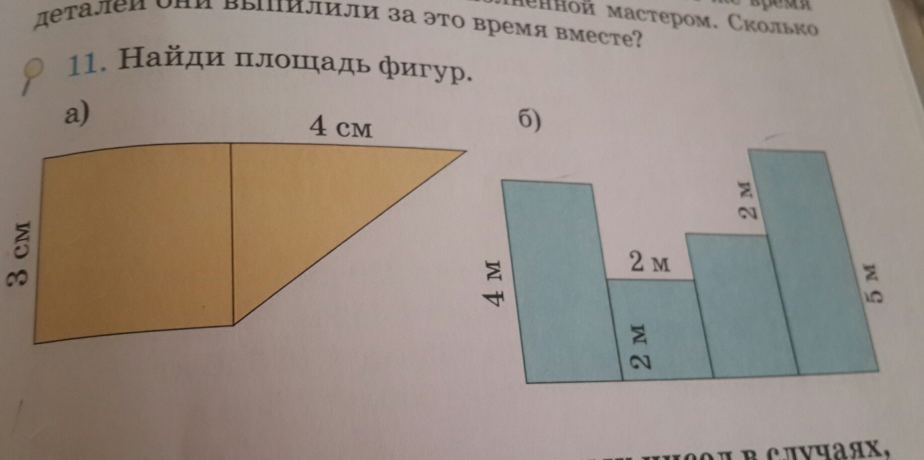 В пункте а) надо достроить ту фигуру до прямоугольника, тогда там легко находим, что площадь той фигуры равна 3*3+3*4=21. В пункте б) делаем все аналогично и получаем что площадь фигуры равна 28