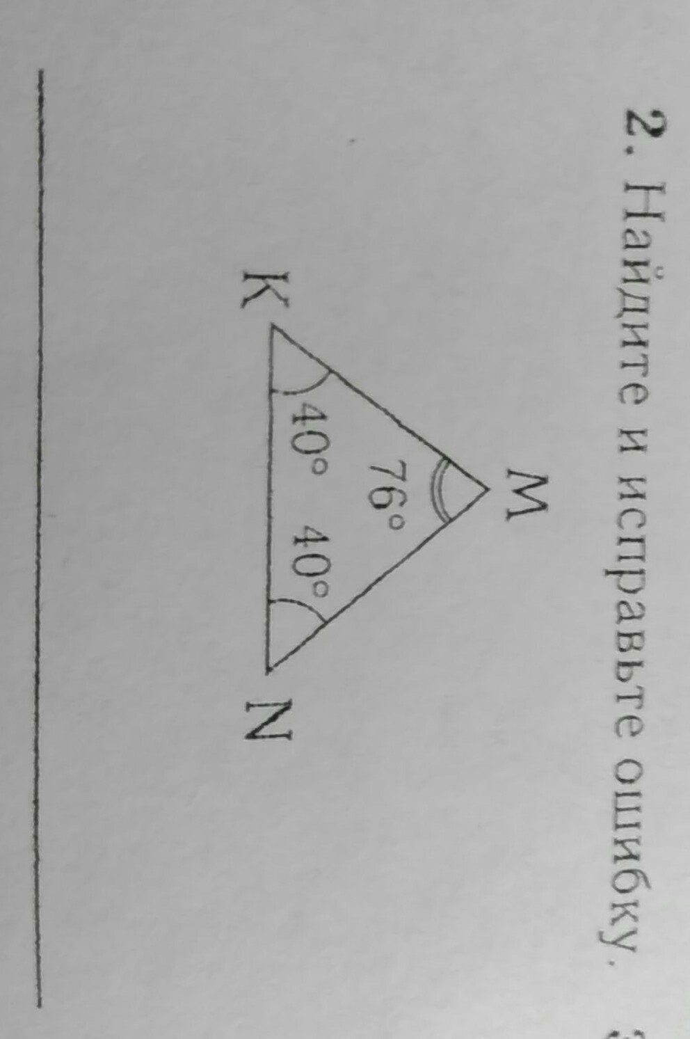 угол М =180°-40°-40°=100°
