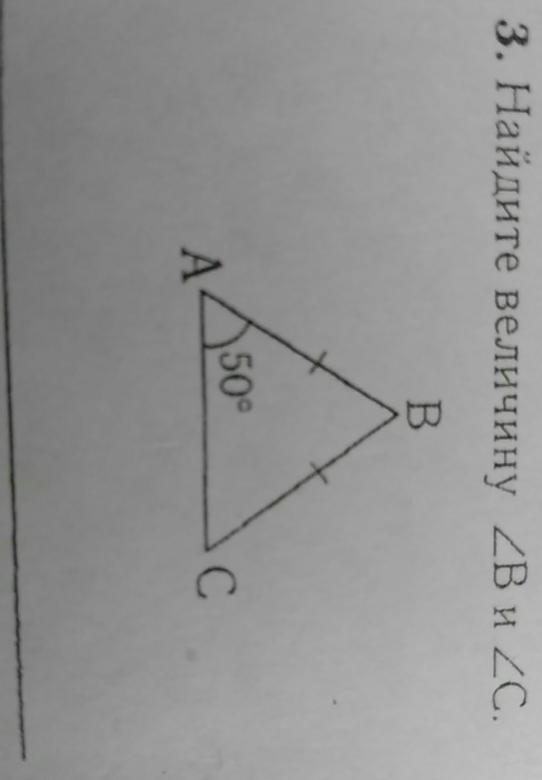 уголВ=180°-50°-50°=80°