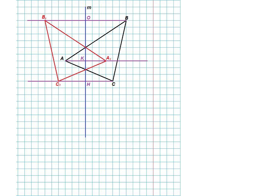 Скопируйте Δ ABC и постройте треугольник, симметричный ему относительно прямой m.