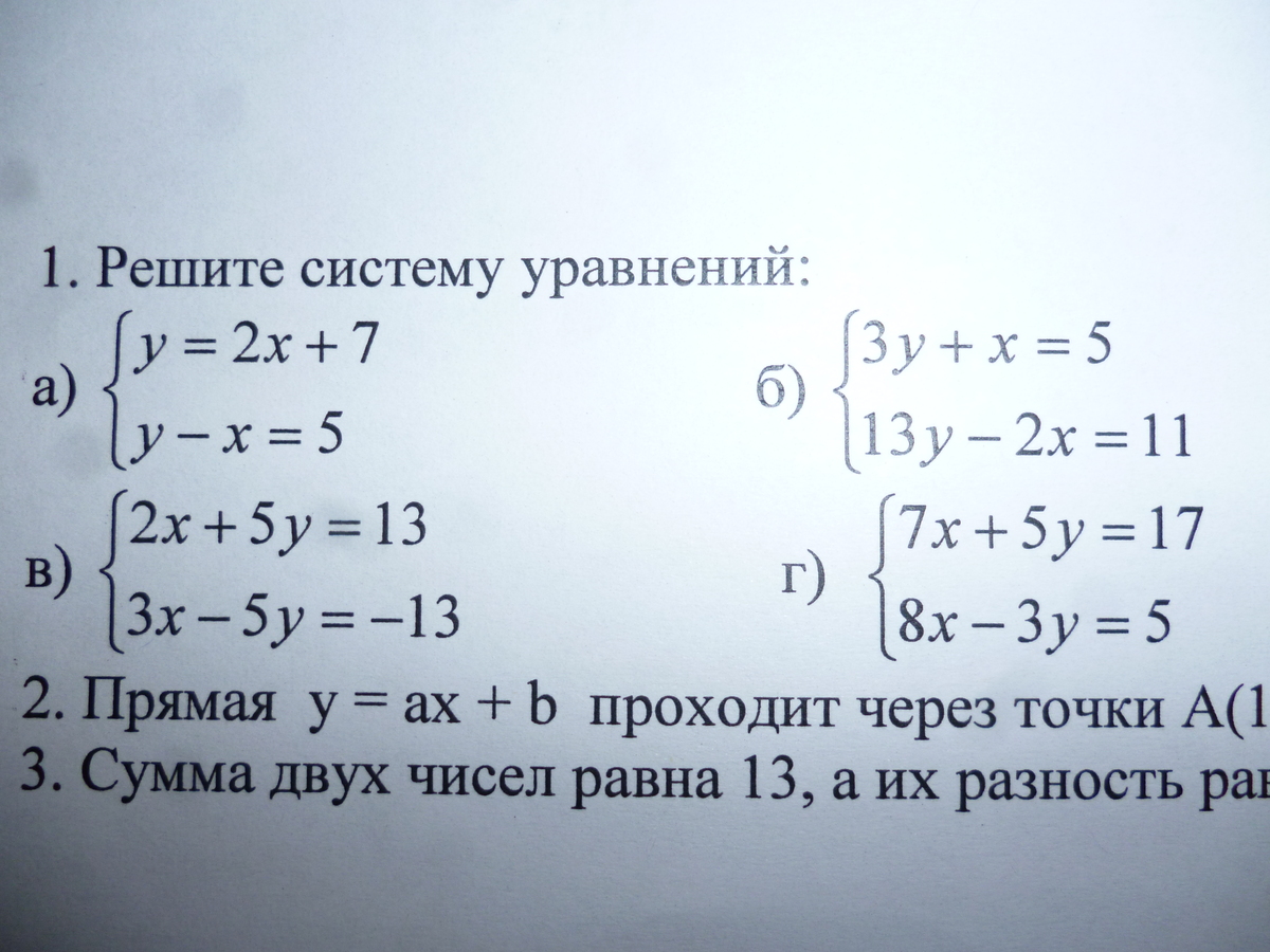 2.Прямая y=ax+b проходит через точки A(1:5),B(-2;-1). Найдите числа a и b и запишите уровнение прямой