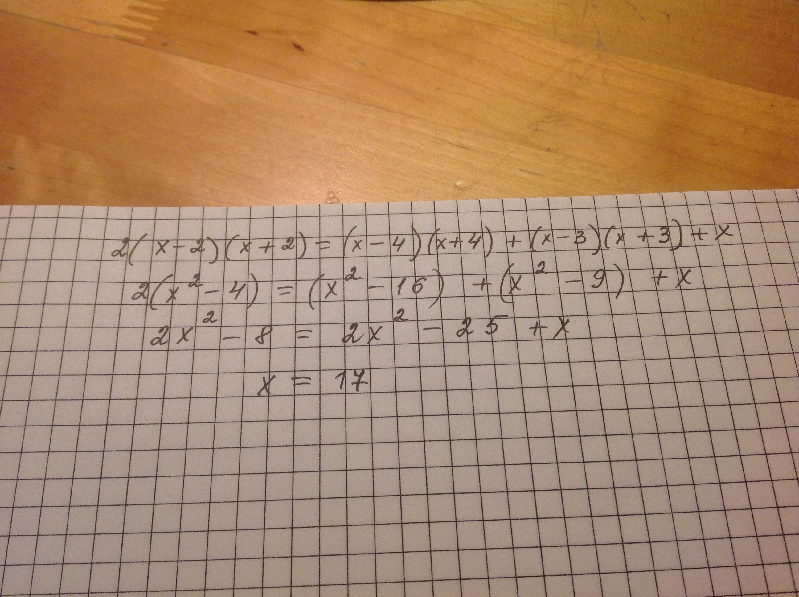 2(x-2)(x+2)=(x-4)(x+4)+(x-3)(x+3)+x