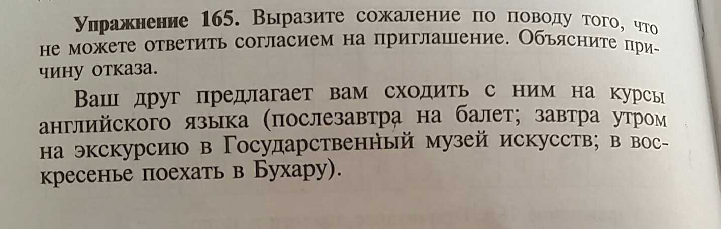 Я выражаю сожаление по поводу того, что послезавтра не смогу с тобой сходить на балет, потому что я уже иду в кино.