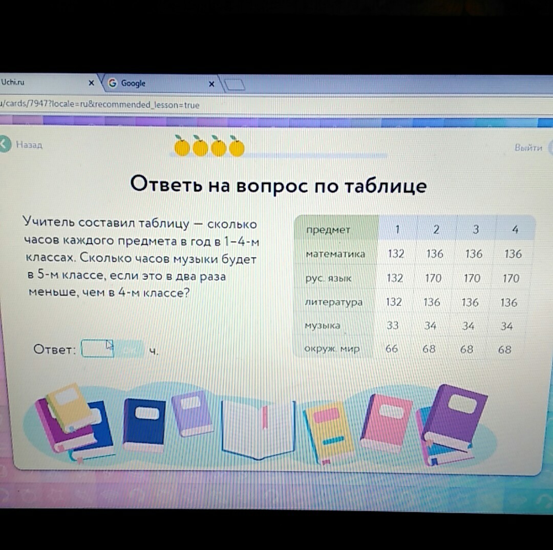 Учитель составил таблицу- сколько часов кажлого придмета ловите фотку