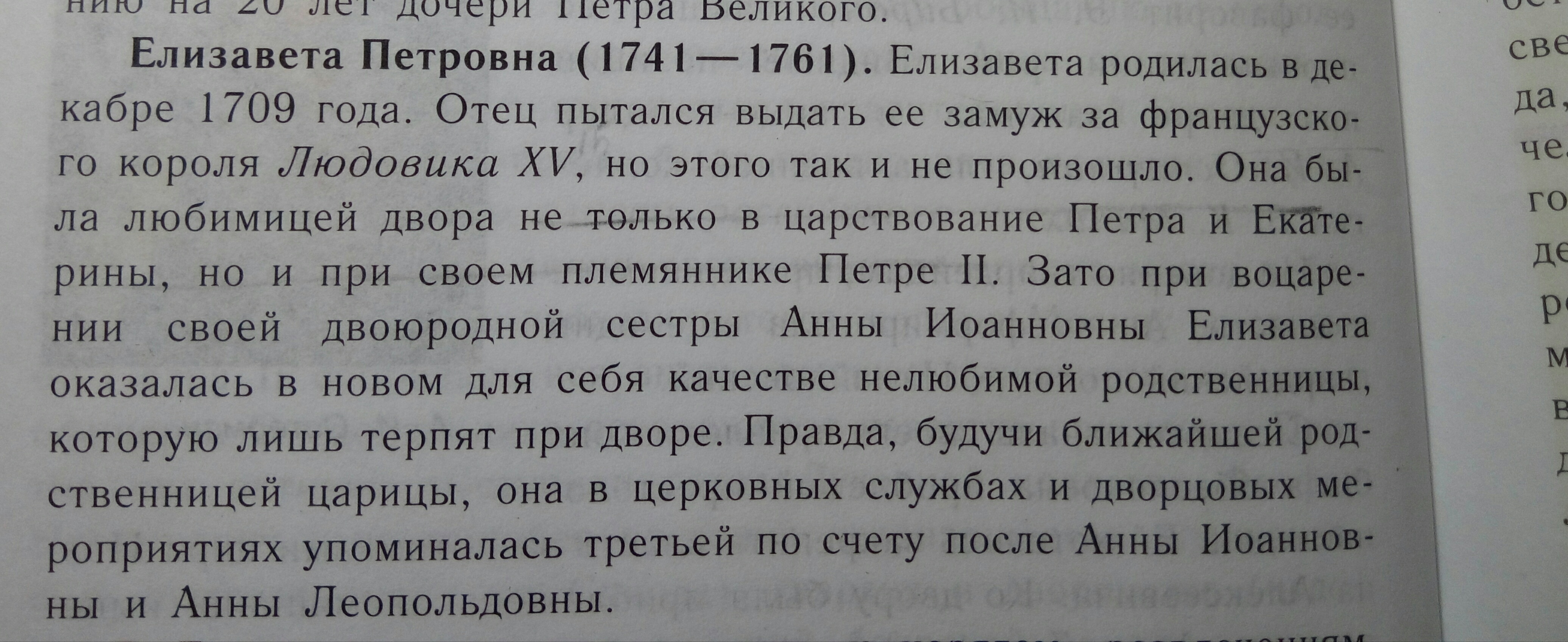 К Елизавете Петровне хорошо относились при дворе во времена Петра 1(1682-1725), Екатерины 1(1725-1727) и Петра 2(1727-1730). Её хотели выдать замуж за французского короля, но не получилось. При Анне Иоановне Елизавета стала лишь нелюбимой родственницей при дворе, которую нужно было терпеть.