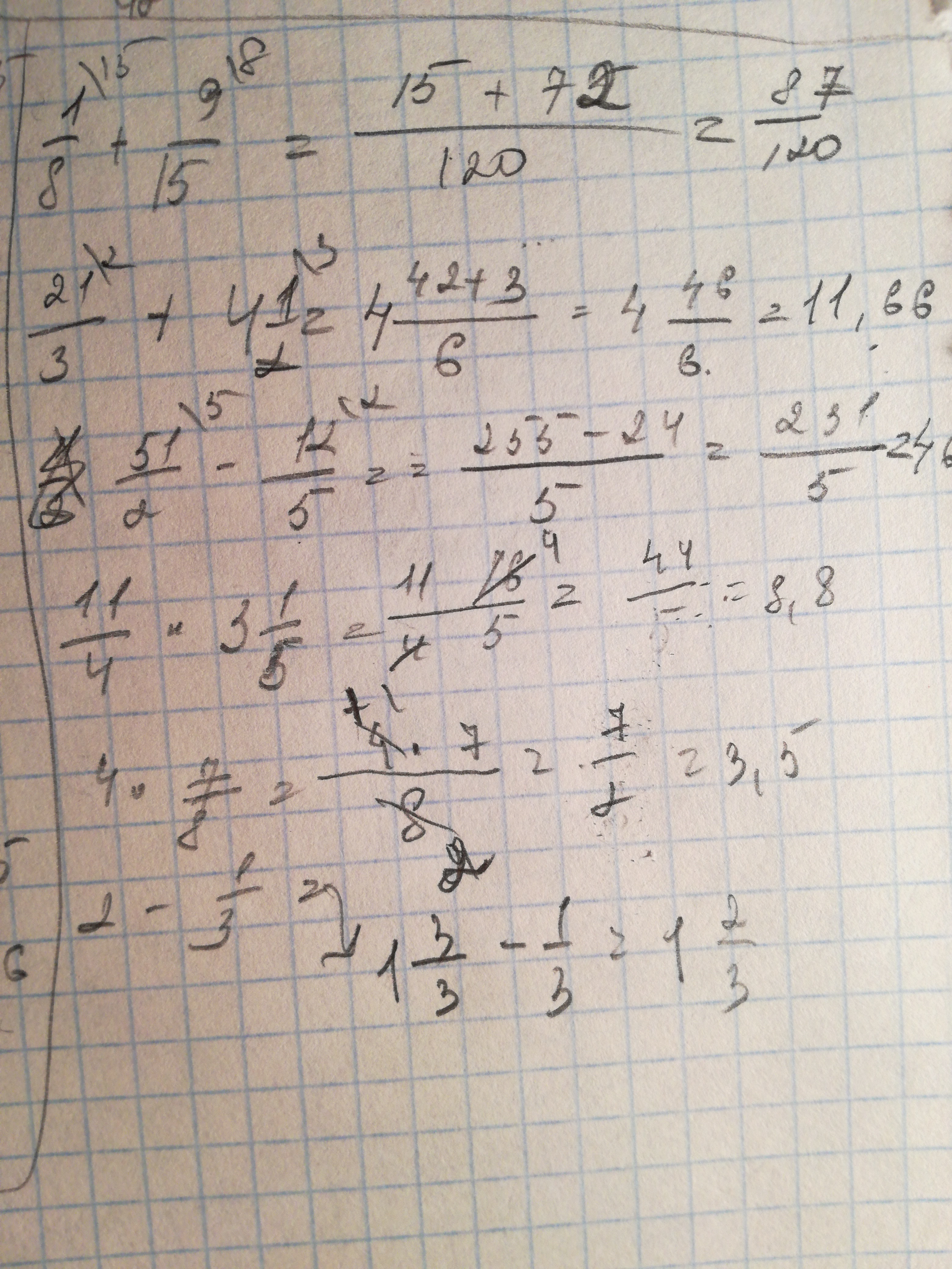 Вот так :18+9/15,2 1/3+4 1/2,5 1/2-1 2/5,1 1/4*3 1/5,4*7/8,2-1/3