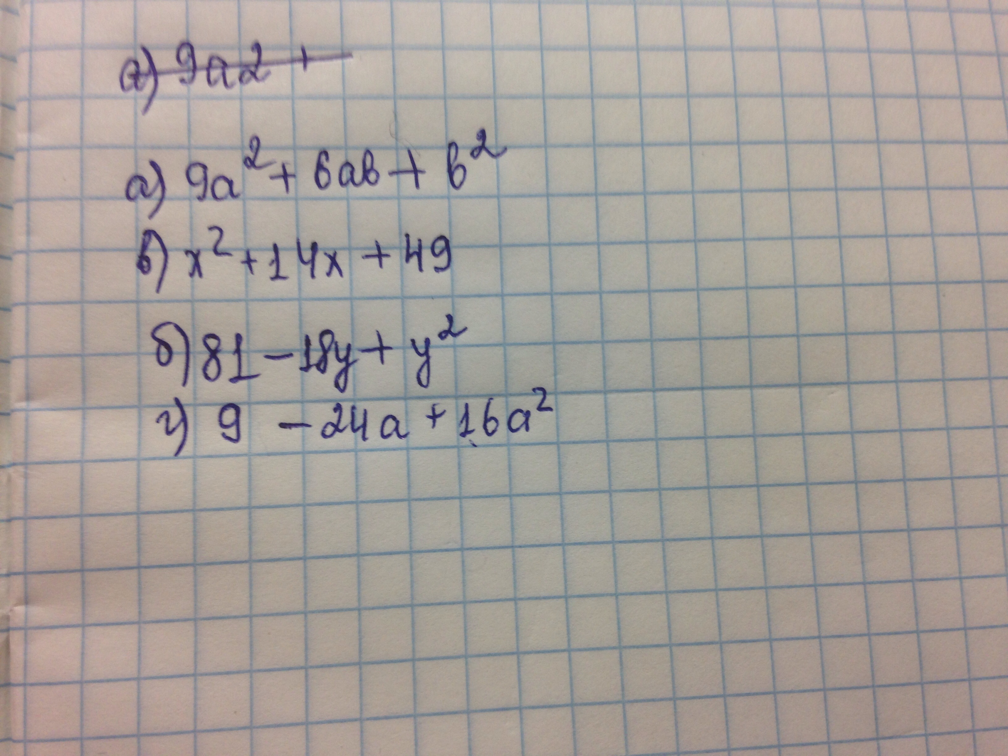 а) 9a2 + * + b2; в) x2 + 14x + * ;