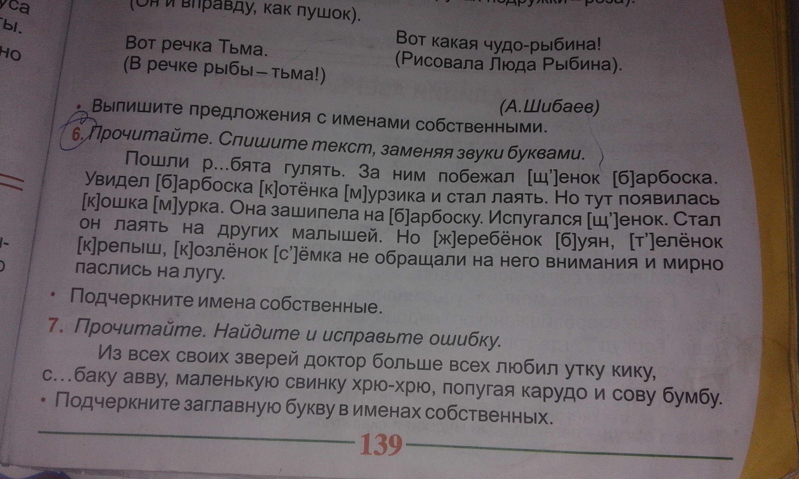 прочитайте. спишите текст ,заменяя звуки буквами.подчеркните имена собственные.упр 6