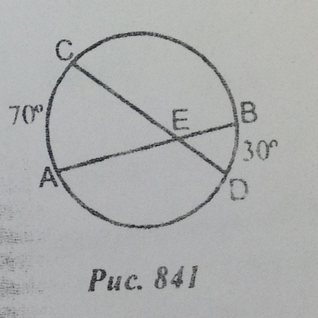 соединим точки С и В, получим треугольник СВЕ, по свойству выписаны углов, угол ЕСВ=30/2=15, угол СВЕ=70/2=35