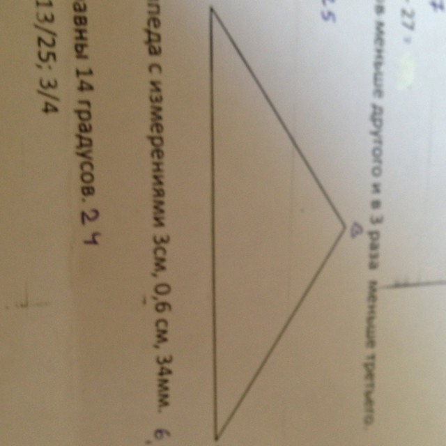 Один из углов треугольника на 10 градусов меньшее другого и в три раза меньшее третьего. Найдите этот угол. A=35* B=110* C=35*