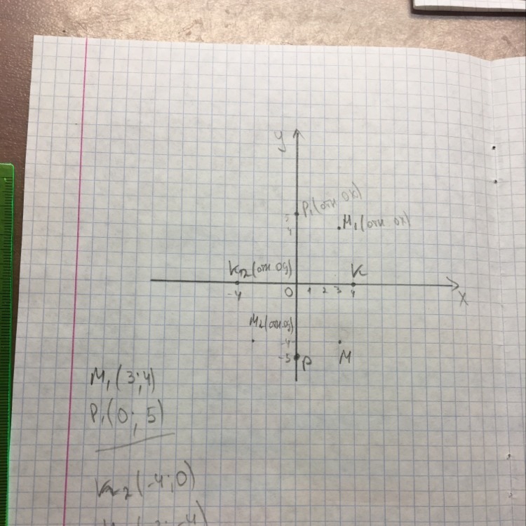 Постройте точки симметричные точкам M (3 -4) K(4 0) P(0 -5) относительно: