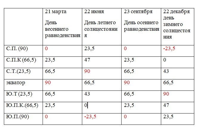 Над какими параллелями солнце стоит в зените каждый из этих дней?
