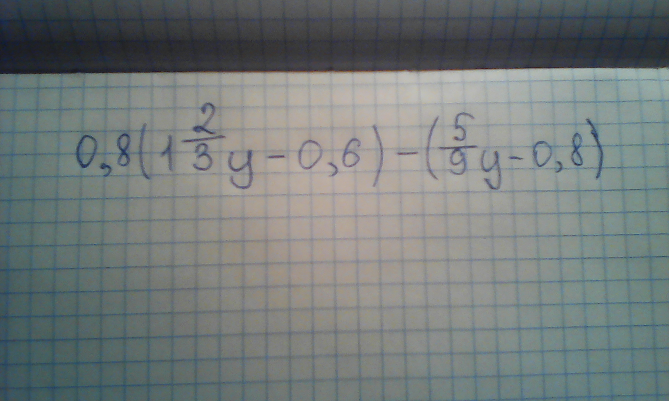 0,8( 1 2/3y - 0,6 ) - ( 5/9y - 0,8 ) = 4/5•5/3y - 0,48 - 5/9y + 0,8 = 4/3y - 0,48 - 5/9у + 0,8 = 12/9у - 5/9у - 0,48 + 0,8 = 7/9у + 0,32