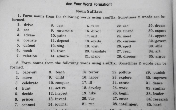 Babysitter, movement, celebration, hunter, decision , prisoner, connection, teacher, children, conqueror, activity, inspector, invention, journalist, terrorism, happiness, illness, development, hiking , buyer, runner, pollution, explorer, creation, worker, beginner, entrence, intelligence, ponishment, improvement, dancer, leadership, researcher, hardship