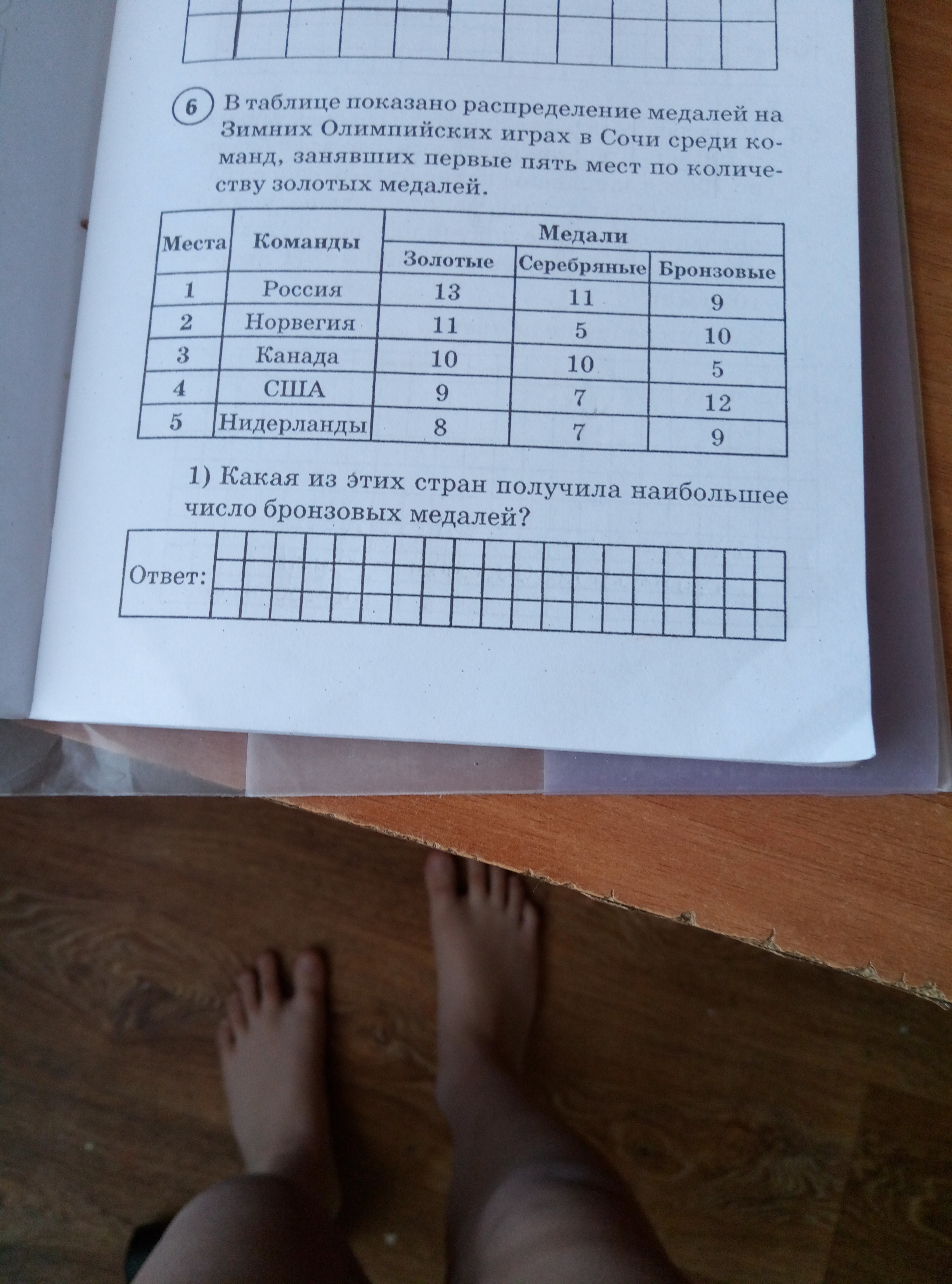 В таблице показано распределение медалей на Зимних Олимпийских играх в Сочи среди команд,занявших первые пять мест по количеству золотых медалей