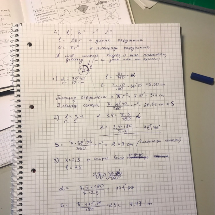 Тут просто нужно подставить формулы окружности, формулы сектора. Можно найти в интернете ............