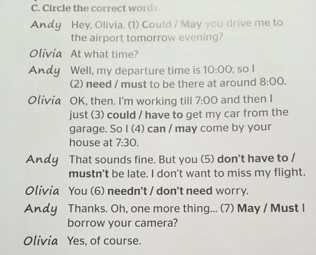 1could 2 must 3have to 4may 5mustn't 6 needn't 7must вроде так если не ошибаюсь