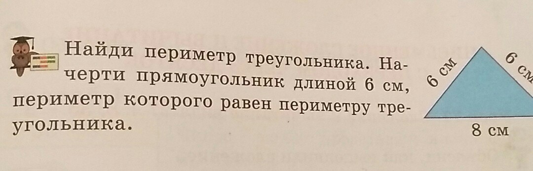 найди периметр треугольника.начерти прямоугольник длиной 6см,периметр которого равен периметру треугольника.
