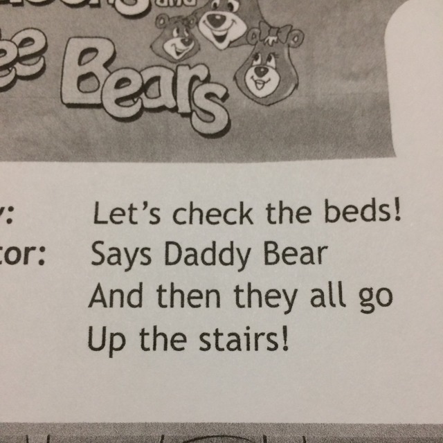 Давайте проверим кровати! Говорит папа медведь И затем все они пошли вверх по лестнице