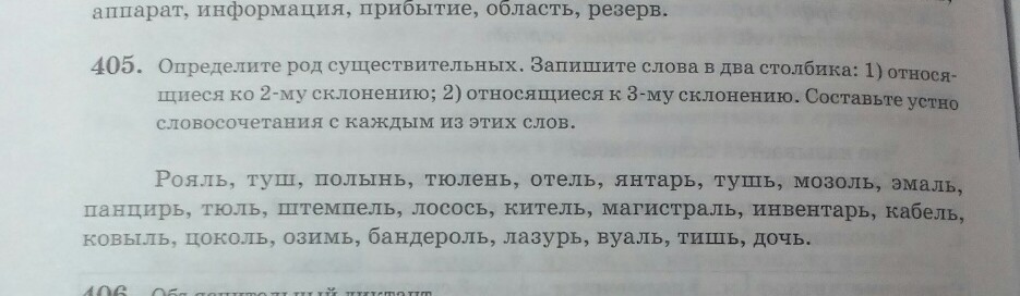 2 склонение: рояль, туш, тюлень, отель, янтарь, панцирь, тюль, штемпель, лосось, китель, инвентарь, кабель, ковыль, цоколь.