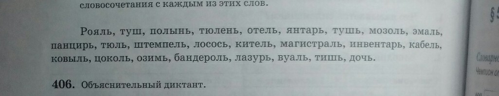 рояль, туш, тюлень, отель, янтарь, панцирь, тюль, штемпель, лосось, китель, магистраль, инвентарь, кабель, ковыль, цоколь,