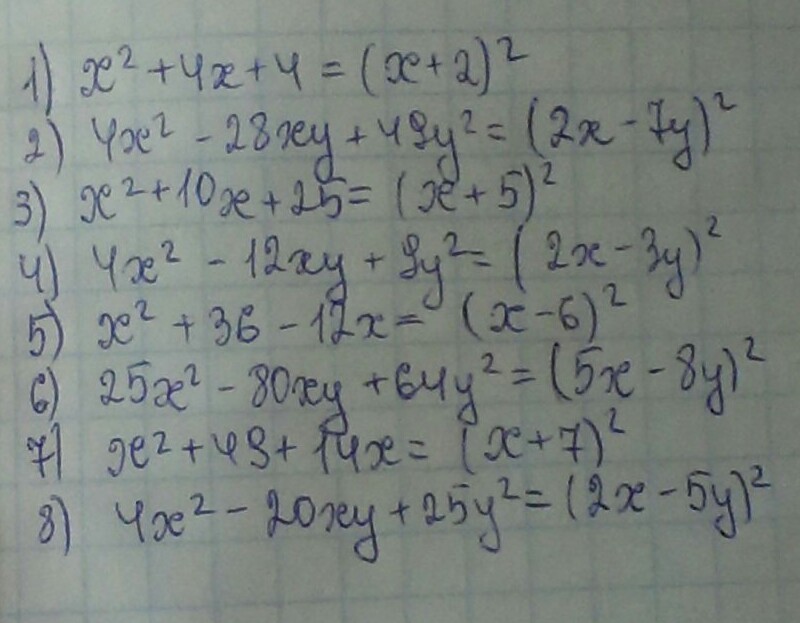 2) 4х^2-28ху+49у^2