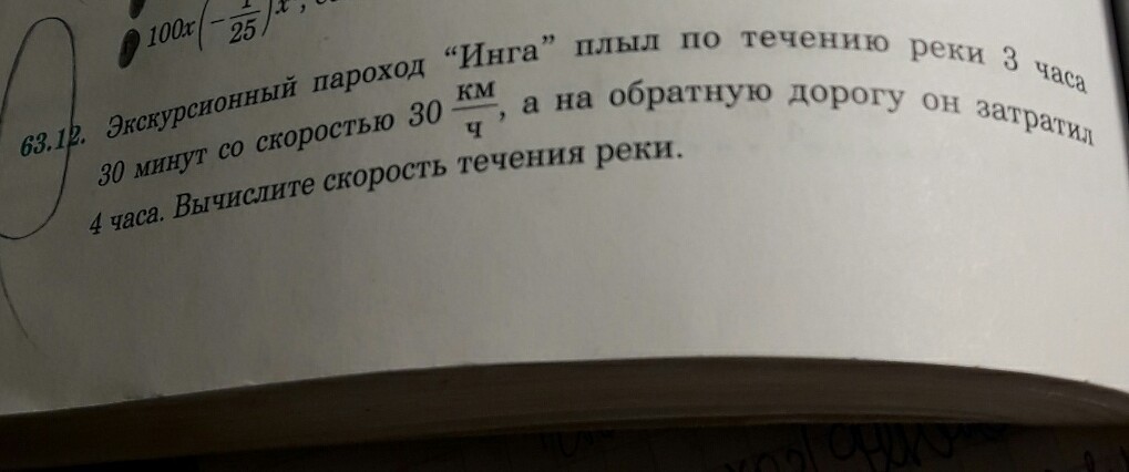 Пусть х - скорость течения реки, тогда (30+х) скорость парохода по течению реки, (30+х)*3,5 - расстояние пройденное пароходом по течению реки, (30–х)*4 обратный путь против течения реки. Составим уравнение: