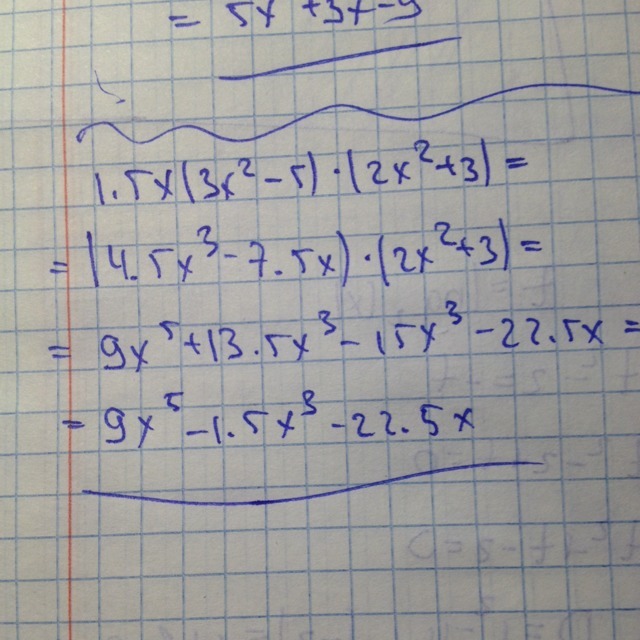 =1.5x(6x^4+9x^2-10x^2-15)=1,5x(6x^4-x^2-15)=9x^5-1,5x^3-22,5